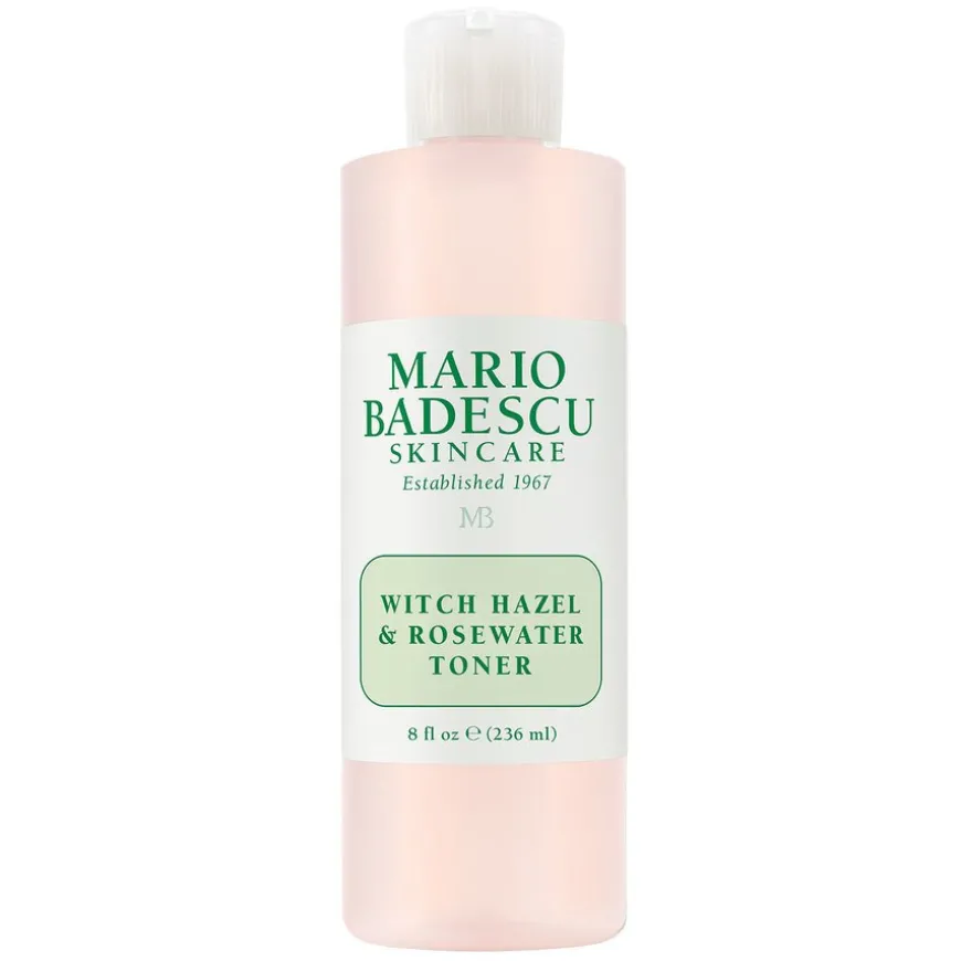 Mario Badescu Witch Hazel & Rosewater Toner er et ansiktsvann som gjør huden klar og strålende etter hver rensing. Ansiktsvannet inneholder rosevann og trollhassel som fjerner smuss og urenheter skånsomt, uten å belaste huden. Aloe vera, rosevann og roseolje bidrar til å berolige, fukte og balansere huden.