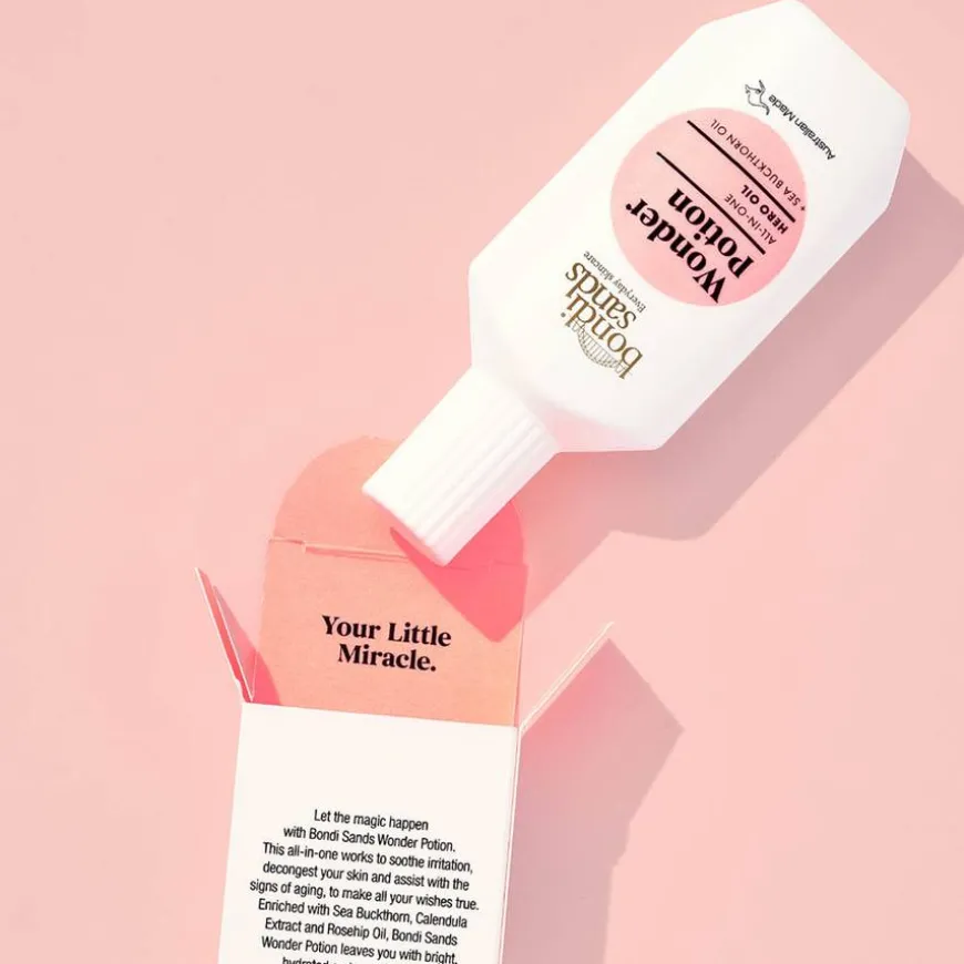 La magien slippe til med Bondi Sands Wonder Potion. Denne alt-i-en oljen jobber med å berolige huden, motvirke aldring, hydrere og nære. Den lar alle dine ønsker bli sanne – i hvert fall nesten. Oljen er beriket med tindved, ringblomstekstrakt og rosehipolje.