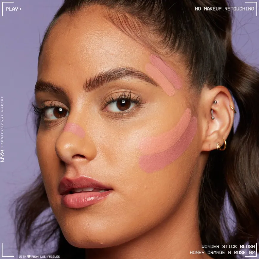 NYX Professional Makeup Wonder Stick Dual-Ended Cream Blush Stick er en rouge-stick med farge i begge ender. Produktet gir farge og definisjon og er lett å tone ut i to enkle steg. Den kremete og superpigmenterte duo-blushen har en vegansk formel som legger seg vakkert på huden din. Den er behagelig og lett å tone ut. Beriket med hyaluronsyre for å tilføre huden fuktighet og forbedre huden. Form, lysne og ton ut med koordinerte farger som er utviklet for å hjelpe deg med å definere ansiktet! Påfør først den mørke fargen der du vanligvis legger contouring for å forme ansiktet. Legg deretter den lyse fargen øverst på kinnbena for å gi frisk glød. Ton ut opp mot tinningene for å duse ut fargen og gi jevn og frisk farge. Hvis du vil ha en mer naturlig look kan du nøye deg med å bruke bare en av fargene. Liker du glam eller naturlig look? Din look er i dine hender! Du kan bruke produktet samen med Wonder Stick for en enda mer definert look eller med Wonder Pencil hvis du ønsker er mer nøyaktig påføring.