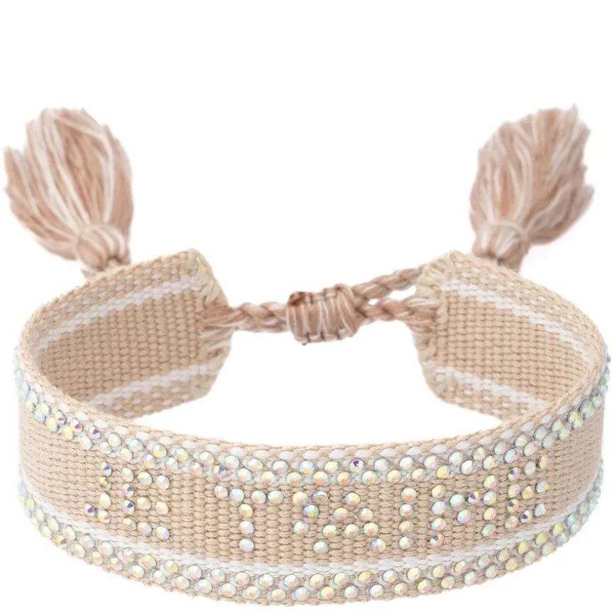 Woven Friendship Bracelet With Crystals er et vevd armbånd med krystaller, et sjarmerende og personlig tilbehør som symboliserer tilknytning og glede. Perfekt for de som ønsker å uttrykke sin personlighet og vise frem sitt vennskap på en unik og trendy måte.