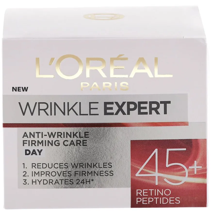 Wrinkle Expert 45+ Daycream er enen fuktgivende antirynkedagkrem som gir fastere hud. Ansiktskremen passer for deg som er 45+ og ønsker en oppstrammende anti-rynkedagkrem med tredobbelt virkning:
