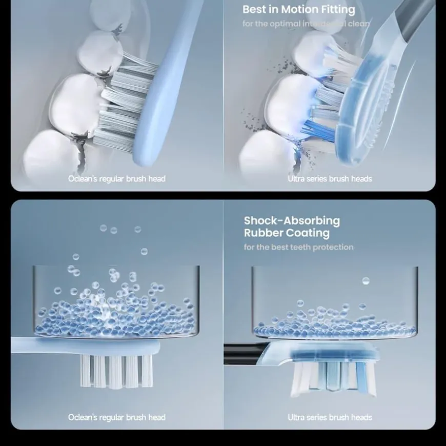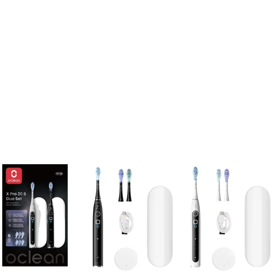 X Pro 20 Wifi Smart Sonic Electric Toothbrush er en profesjonell elektrisk tannbørste utviklet for dyptgående, skånsom og intelligent rengjøring. Med en kraftig Maglev 4.0-motor, superbrede oscillasjoner og opptil 84 000 bevegelser per minutt, gir den optimal effekt i kombinasjon med sanntids tilbakemelding og tilpassbare funksjoner. OLED-fargeskjermen (0,96″ TFT) viser moduser, intensitet og visuelle børsterapporter for alle 12 børsteområder. Du kan tilpasse børstetiden, velge mellom 5 forhåndsinnstilte moduser (Sensitive Care, Quick Cleaning, Deep Cleaning, Whitening Polishing, Private Customization) og justere intensitet i 10 nivåer via Oclean-appen. Tannbørsten støtter sanntidsrapport, personlige skjermbilder ved oppstart og lydsvak drift (<45 dB) takket være WisperCare-teknologi. I tillegg til avansert bevegelsessensor og algoritmestyring har den støtte for WiFi og Bluetooth og synkronisering med Apple Health. Med Type-C-lading, hurtiglading på 3 timer og opptil 40 dagers batteritid, er dette et ideelt valg for den teknologiinteresserte som ønsker en profesjonell pusserutine hjemme.