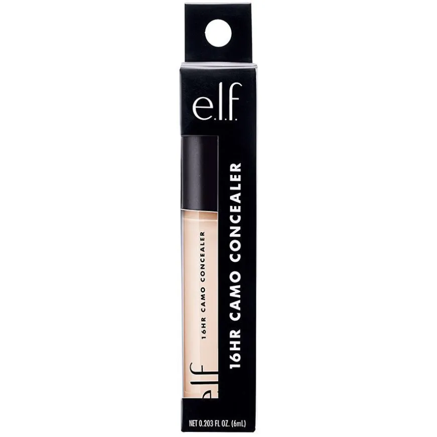 16HR Camo Concealer fra e.l.f. er en crease-resistent, flytende concealer med full dekkevne og en matt finish som varer i opptil 16 timer. Den lette, høypigmenterte formelen skjuler urenheter, mørke ringer og ujevnheter, samtidig som den korrigerer og perfeksjonerer huden. Med en stor applikator gir concealeren en jevn og presis påføring hver gang.
