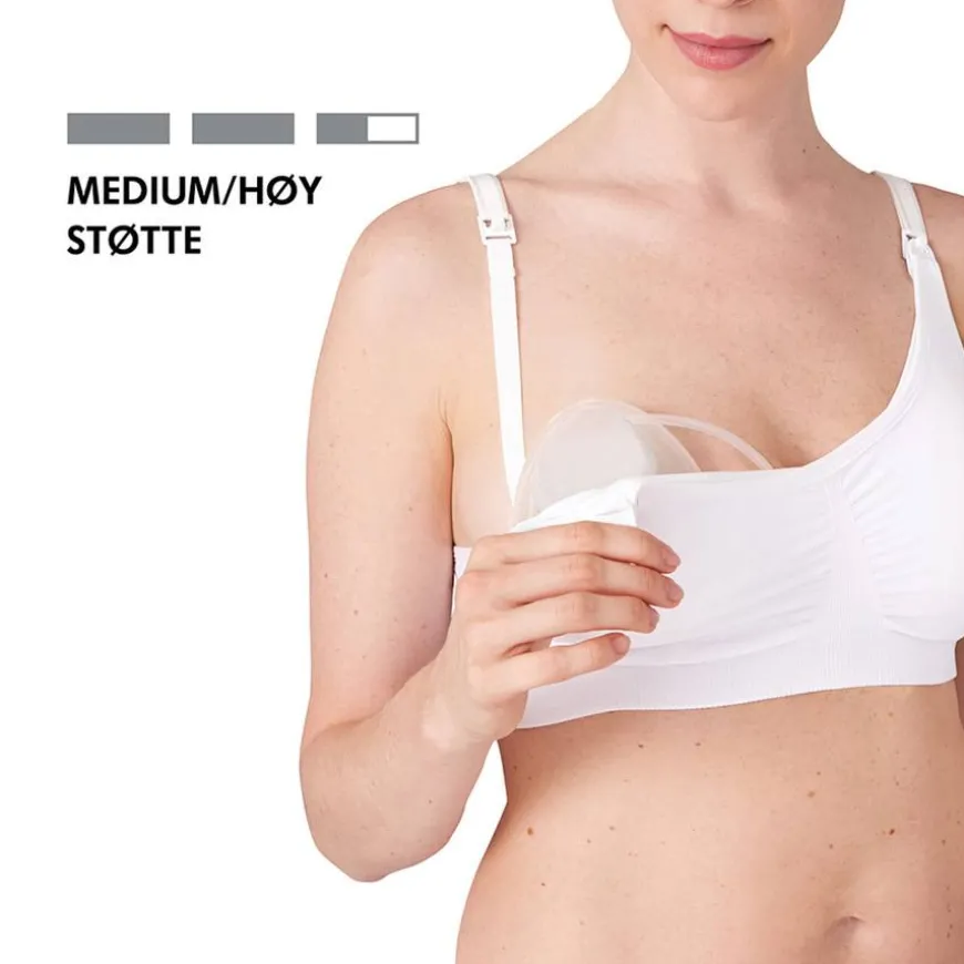 3-In-1 Nursing And Pumping Bra er en allsidig og komfortabel 3-i-1 amme- og pumpe-BH. Høy pusteevne og designet med Soft Touch Adaptive Stretch™ for en perfekt passform. Nedfellbare kopper for maksimal hud-til-hud-kontakt når du ammer for å knytte bånd til babyen din.