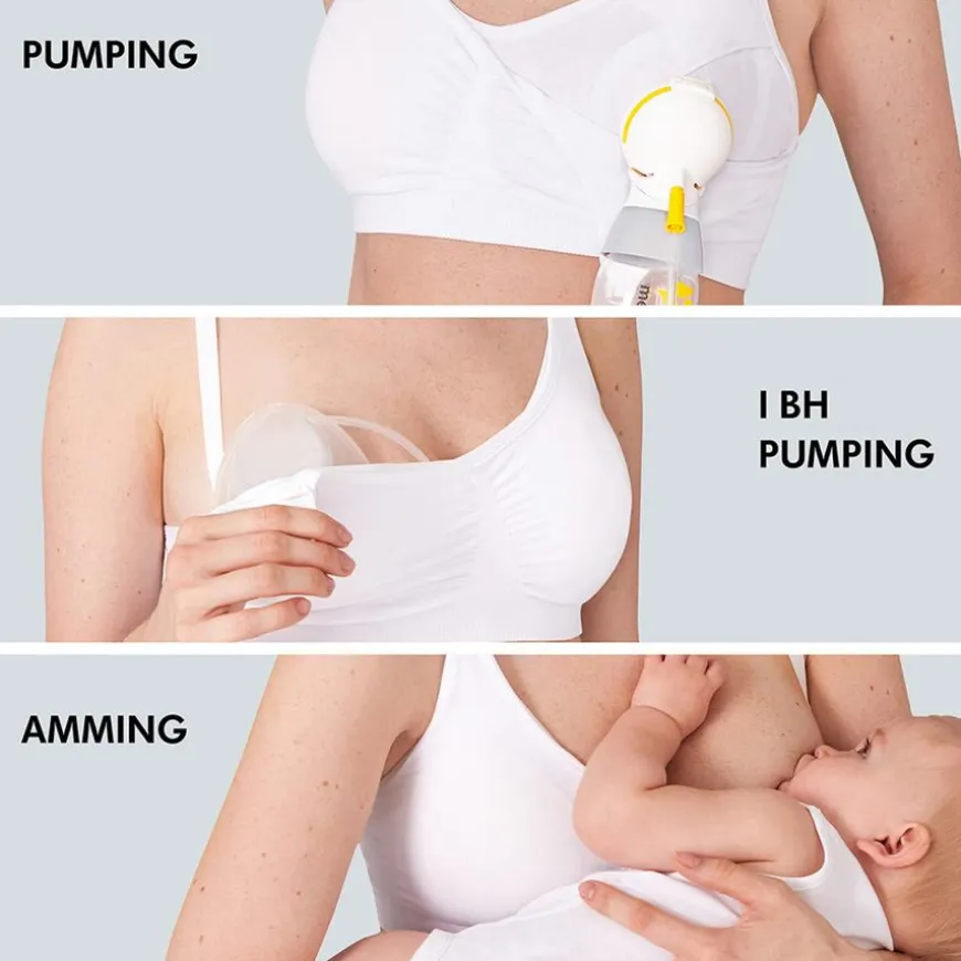 3-In-1 Nursing And Pumping Bra er en allsidig og komfortabel 3-i-1 amme- og pumpe-BH. Høy pusteevne og designet med Soft Touch Adaptive Stretch™ for en perfekt passform. Nedfellbare kopper for maksimal hud-til-hud-kontakt når du ammer for å knytte bånd til babyen din.