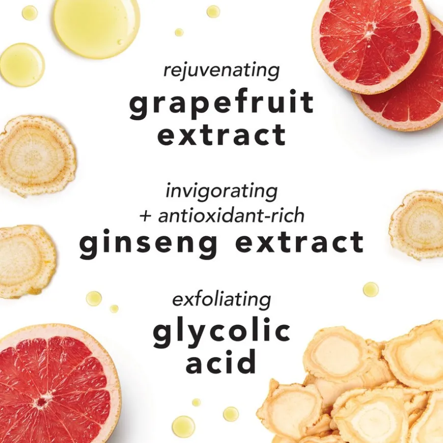 Aqua (Water, Eau), Sodium Laureth Sulfate, Propylene Glycol, Glycerin, Sodium Chloride, Glycolic Acid, Citrus Grandis (Grapefruit) Fruit Extract, Tilia Cordata Flower Extract, Panax Ginseng Root Extract, Panthenyl Hydroxypropyl Steardimonium Chloride, Phenoxyethanol, Ethylhexylglycerin, Parfum (Fragrance), Sodium Hydroxide, Chlorphenesin, Sodium Sulfate, Caprylyl Glycol, Linalool, Hexyl Cinnamal, Citronellol, Limonene, Benzyl Alcohol, Geraniol, CI 19140 (Yellow 5), CI 14700 (Red 4)