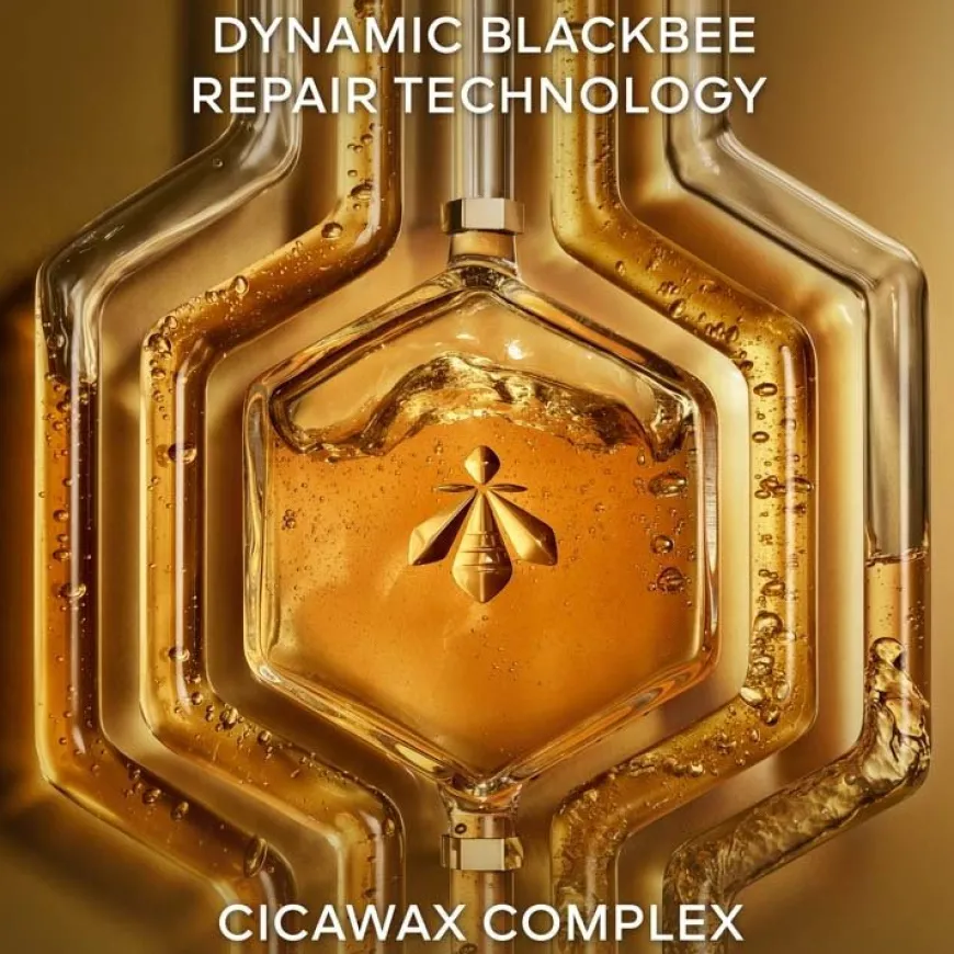 Den lette teksturen kombinerer Dynamic Blackbee Repair-teknologi, konsentrert Black Bee honning fra Ouessant Island**, samt en kompleks sammensetning av beroligende og styrkende aktive ingredienser: Cicawax. På én time er hudbarrieren gjenopprettet***. Etter 7 dager virker huden mer ungdommelig****. Huden blir synlig glattere, føles fastere og får en naturlig glød. 95 % naturlige ingredienser*****.