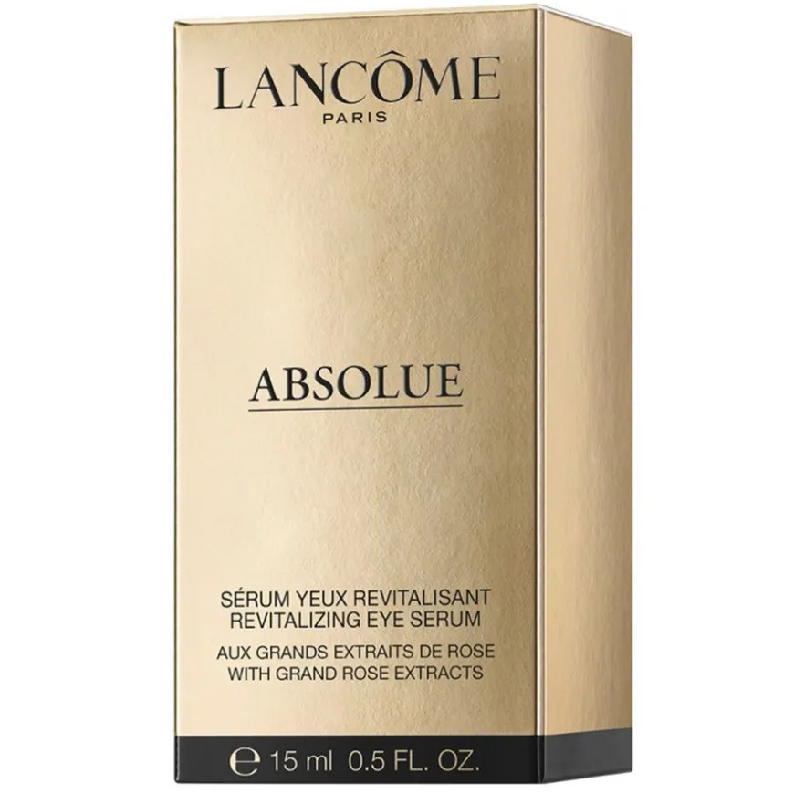 Lancôme Absolue Precious Cells Eye Serum er et luksuriøst øyeserum formulert med Grand Rose-ekstrakter for å gi intensiv fuktighet og forynge det delikate øyepartiet. Den nye versjonen kommer med en elegant gullfarget hette, og etter påføring føles huden umiddelbart mer fuktet og komfortabel. Øyepartiet ser friskere, mer strålende og ungdommelig ut, noe som reduserer synligheten av tretthetstegn.