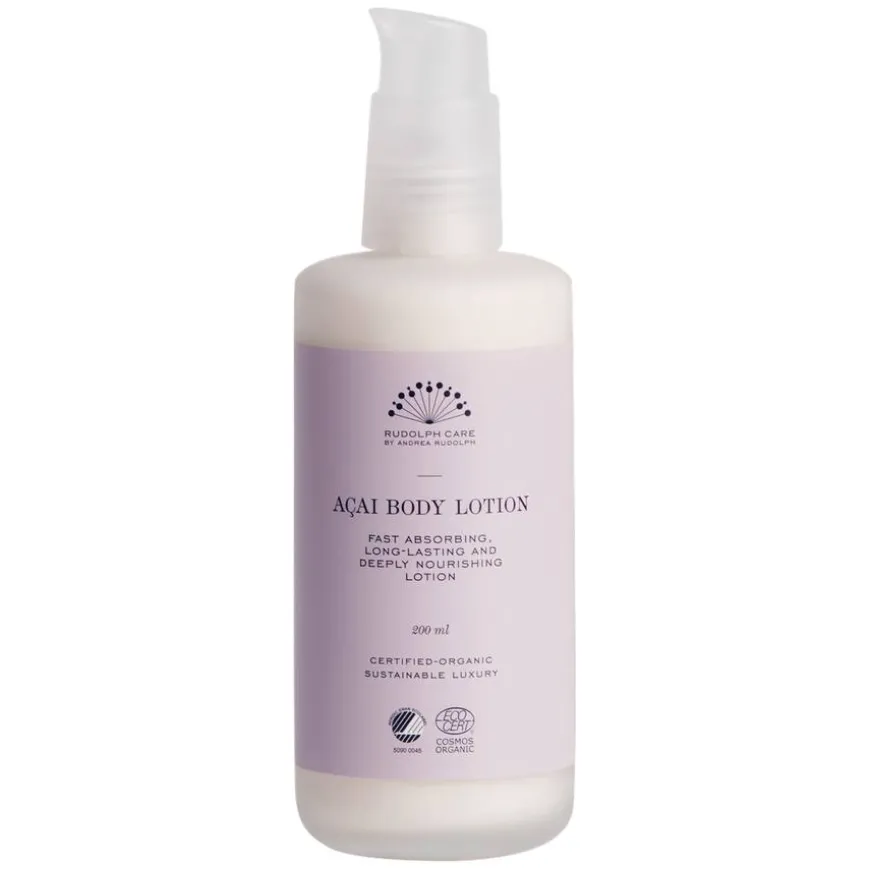 Açai Body Lotion er en kroppslotion som kombinerer bløtgjørende og aktive ingredienser for å gi intens pleie til huden. Selv med sitt høye innhold av oljer og fettstoffer, føles lotionen superlett og trekker raskt inn uten å legge seg på hudens overflate. For optimal effekt, varm lotionen mellom hendene og masser den grundig inn i huden for dyp fuktighet og reparasjon av tørrhet. Passer spesielt godt til følsom, tørr, irritert og eksemutsatt hud. Sertifisert med Svanemerket, Ecocert COSMOS Organic og Vegan Trademark.