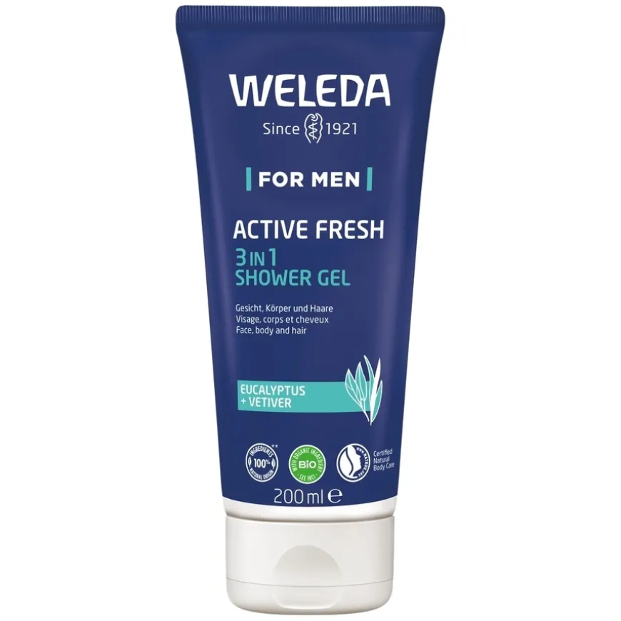 Active Fresh 3-In-1 Shower Gel er rn dusjgelé designet for menn, med en forfriskende følelse. Rengjør skånsomt uten å tørke ut huden. Inneholder vegetabilske ingredienser. Dusjgelen har en oppløftende og energigivende duft utelukkende basert på ekte eteriske oljer.