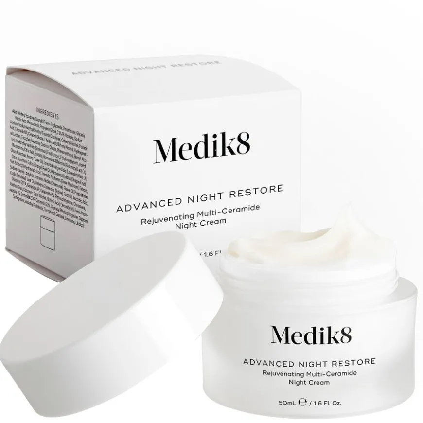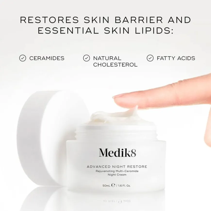 - Ceramidkompleks: viktig for å bevare vann i huden, regulere celleaktiviteten og reparere hudens naturlige beskyttelse. Gir svært effektiv fuktighetstilførsel, men fungerer best i optimal mengde og i kombinasjon med andre molekyler som finnes i hudens naturlige lipidbarriere. Medik8s omfattende forskning på ceramidkombinasjoner har resultert i en optimal kombinasjon av ceramid 1 og 3 samt kolesterol og fettsyrer som i prinsippet er hudidentisk og effektivt tilfører næring til huden.