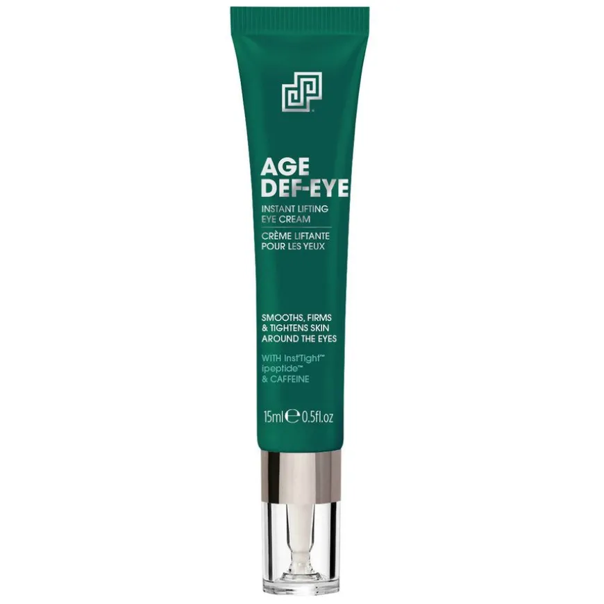 Age Def-Eye: Instant Lifting Eye Cream er en umiddelbar oppstrammende og løftende øyekrem som frisker opp trøtte øyne. Formelen inneholder ingredienser som reduserer fine linjer og rynker rundt øyeområdet umiddelbart. Kombinasjonen av koffein og ipeptide™ fungerer i synergi for å både gi raske og langsiktige fordeler til huden rundt øynene. Lett ogkjølende formel. Inneholder koffein. Nærer ogfukter huden.