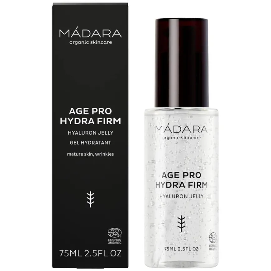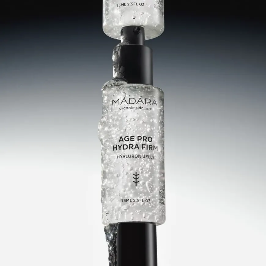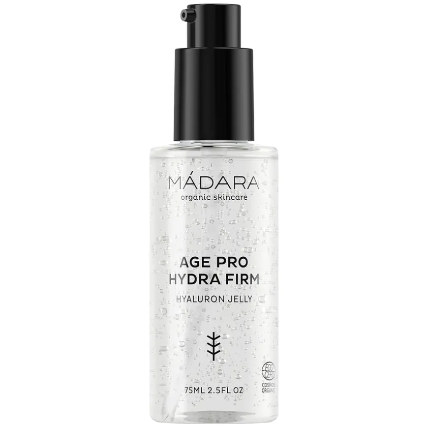 Hydra Firm Hyaluron Jelly fra Age Pro er en økologisk, oljefri fuktighetskrem i geléform som gir umiddelbar lindring og en oppfriskende følelse. Den lette og luksuriøse formelen inneholder nordlig bjørkevann, som klinisk er bevist å øke hudens celledeling med 25 %, samt hyaluronsyre med både lav og høy molekylvekt for å gi dyp hydrering og styrke hudens fuktighetsbarriere. Resultatet er fyldigere, glattere og sunnere hud som ser frisk og strålende ut. Passer alle hudtyper, også kombinert og fet hud, og er ideell for deg som ønsker en lett, men effektiv fuktighetspleie. Dermatologisk testet og dokumentert å øke fuktighetsnivået med 46 % på bare én time.