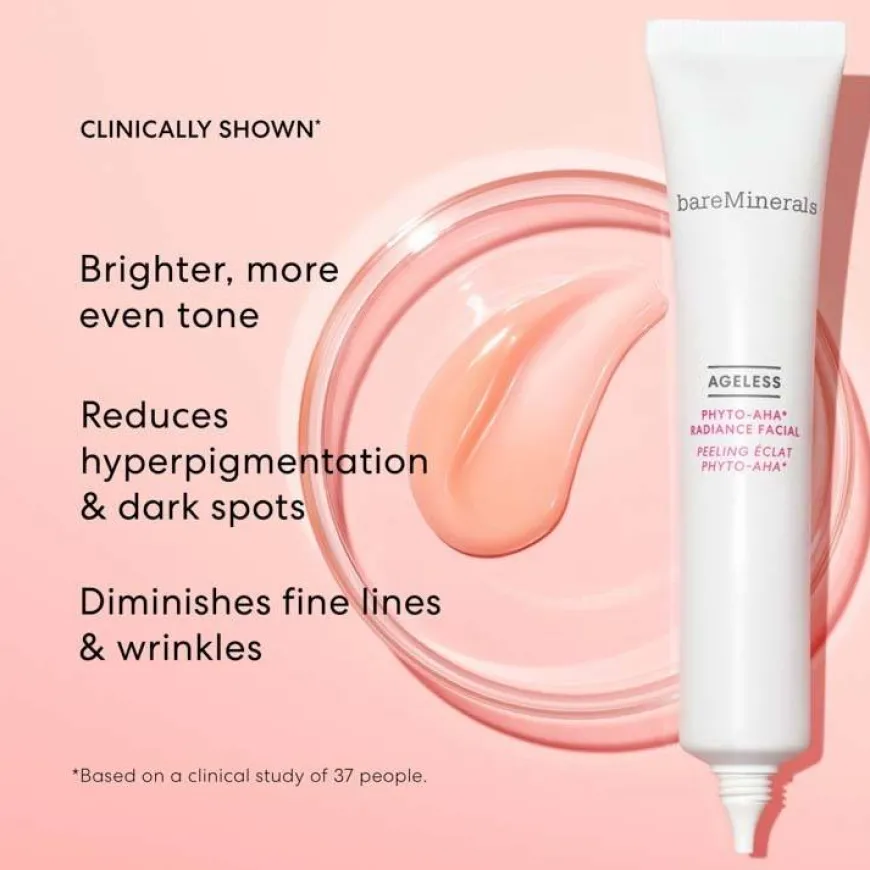 Ageless Phyto AHA Radiance Facial er en eksfolierende ansiktsmaske som skånsomt gir en klarere, glattere og fuktet hud. Masken er beriket med et plantebasert alternativ til AHA som er like effektivt, men uten irritasjon. Den inneholder også plantebasert glyserin, som bidrar til å fukte og opprettholde en sunn hudbarriere.