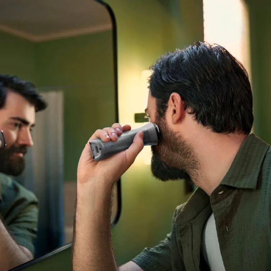 - Trimmer som automatisk tilpasser seg skjeggets tetthet.