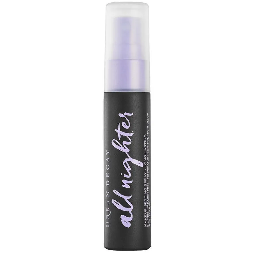 Urban Decay All Nighter Makeup Setting Spray er en mikrofin spray som frisker opp huden og fikserer din makeup. Formelen føles pustene, og holder sminken glansfri og fresh i opp til 16 timer uten at den smelter, sprekker eller falmer. Formelen er 100 % vegansk og uten ingredienser og biprodukter av animalsk opprinnelse.