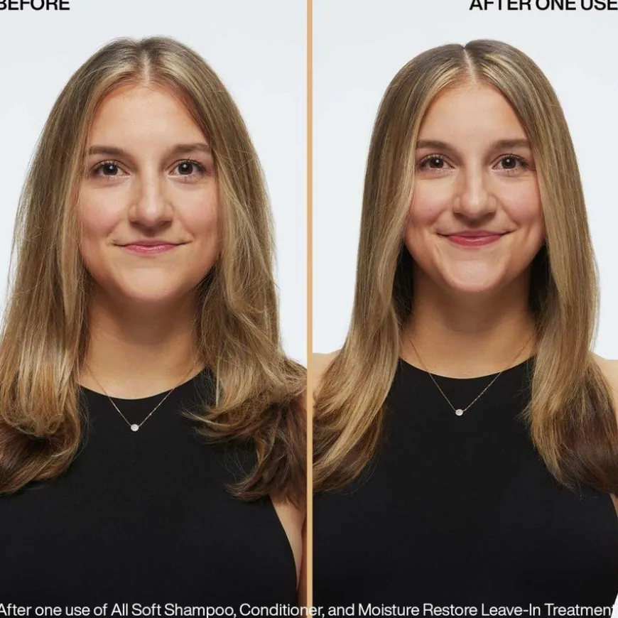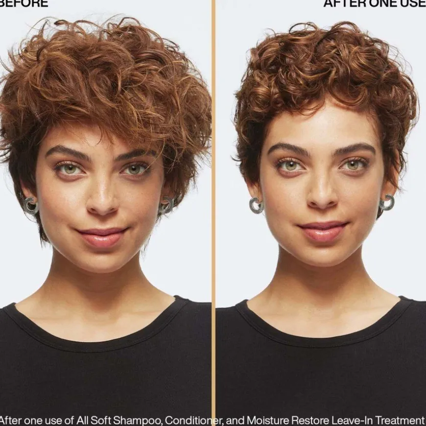 All Soft Moisture Restore fra Redken inneholder hyaluronsyre som hjelper håret med å gjenopprette fuktigheten og beholde den hele dagen. Ikke bare gir den umiddelbart 10x glattere hår*, den nærer og tilfører glans ved hjelp av arganolje. Som en del av All Soft-serien, bidrar dette leave-in-produktet med å synlig redusere flisete tupper, temme krustete hår og gjør det lettere å børste håret*. Moisture Restore tilbyr varmebeskyttelse opp til 230°C, noe som gjør det til det perfekte pre-stylingproduktet hvis du vil ha mykt og skinnende hår.