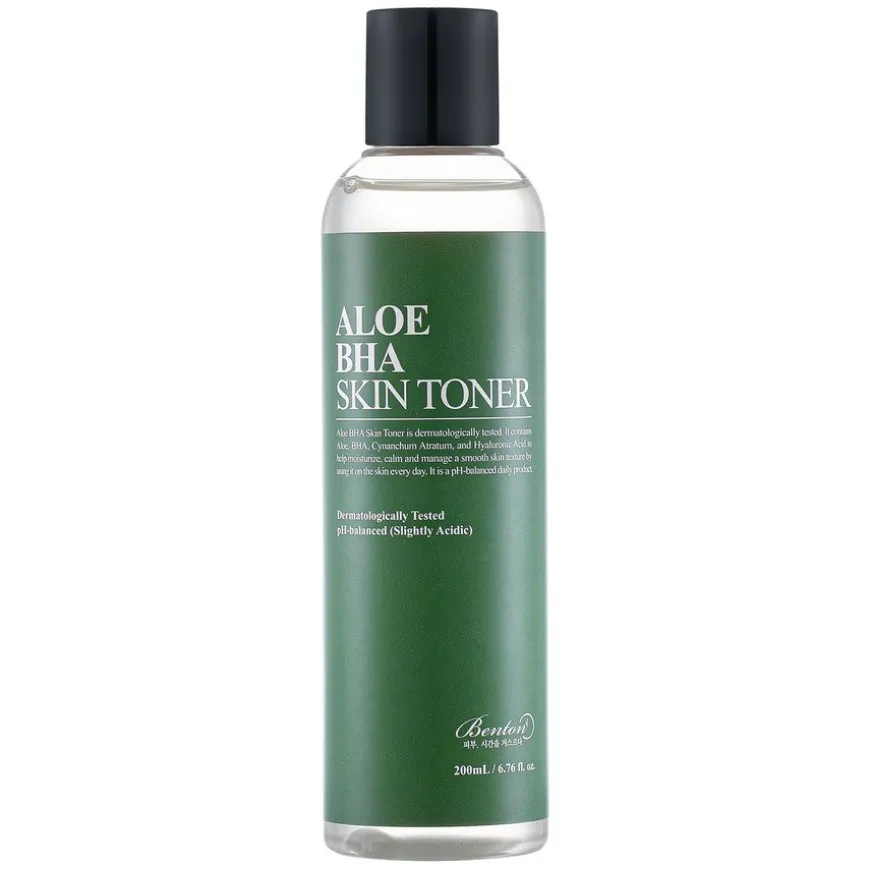 Aloe BHA Skin Toner er en av Bentons bestselgere fordi den effektivt, men skånsomt, forebygger og lindrer ulike hudtilstander som akne, rødhet, tørrhet på overflaten, ubalansert hud, tilstoppede porer med mer. I stedet for vann, består dette ansiktsvannet av 80% aloe vera-juice som fukter og beroliger huden. En lav prosentandel BHA-syre på 0,5% gir en mild eksfoliering og løser opp talg i porene, samt virker antiinflammatorisk. Passer alle hudtyper, inkludert sensitiv hud.
