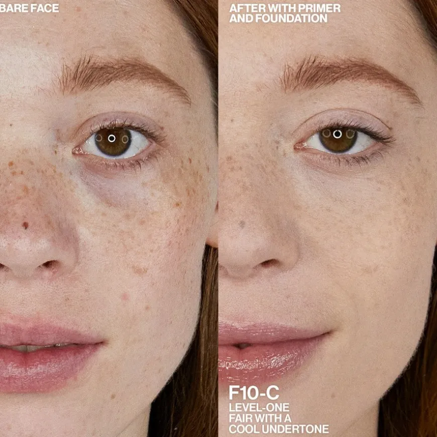 - Hudpleiedrevet foundation forbedrer hudens balanse umiddelbart og over tid.