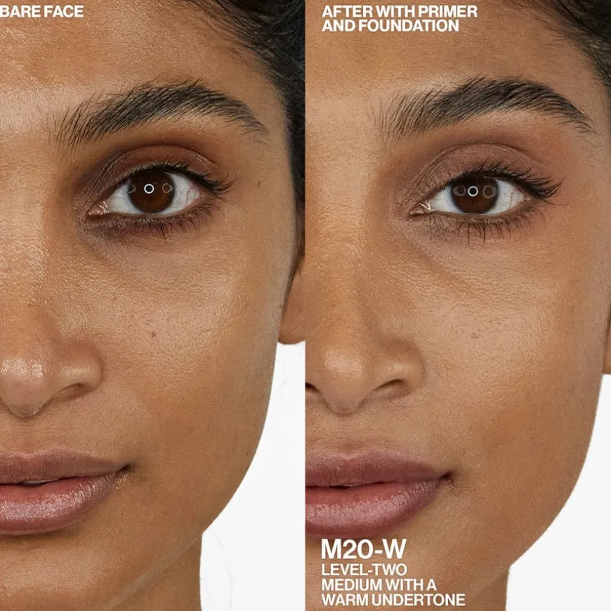 Denne flytende foundationen inneholder Smashbox’ Balance Boost Complex med hyaluronsyre som gir umiddelbar og 24-timers fuktighet, samt adaptogener som hjelper huden med å fungere som en automatisk termostat for å balansere olje og fuktighet i huden. Produktet kan bygges fra middels til full dekning og gir et naturlig resultat som jevner ut hudtonen.
