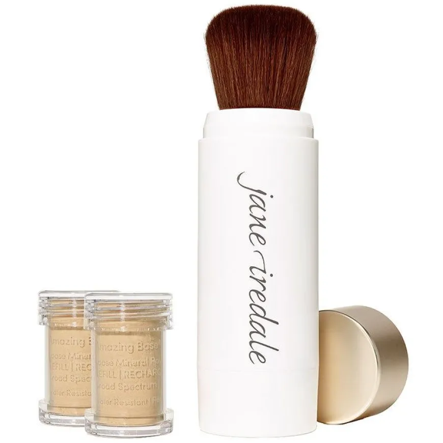 Amazing Base Refillable Brush er enlett og oljefri løs mineralfoundation med bredspektret solfaktor 20, i en miljøvennlig, vegansk gjenbrukskost.