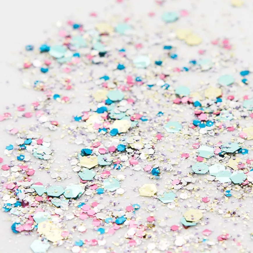 Angel Dreams glitteret er en mix av himmelske pastellfarger i toner av rosa, lyseblå, sølv og hvitt glitter. Perfekt tilbehør til de drømmende. Glitteret kan festes med leppeomade eller Vaseline.