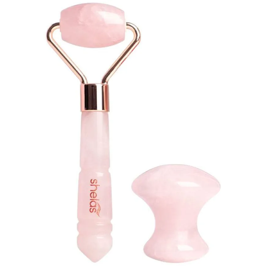 Depuffing Eye Massage Tool & Facial Roller Mini er to massasjeprodukter til ansiktet, et massasjeverktøy rettet mot området rundt øynene og et rettet mot ansiktet. Begge produktene består av 100% rosenkvarts. Ansiktsrullen stimulerer, gjenoppliver og strammer opp en sliten og stresset hud. Den gir en jevn og rullende effekt som føles behagelig på huden. Få mer opplagte og mindre hovne øyne med Eye Massage Tool. Med denne stimuleres og gjenopplives området rundt øynene for et fastere, mer våkent blikk.