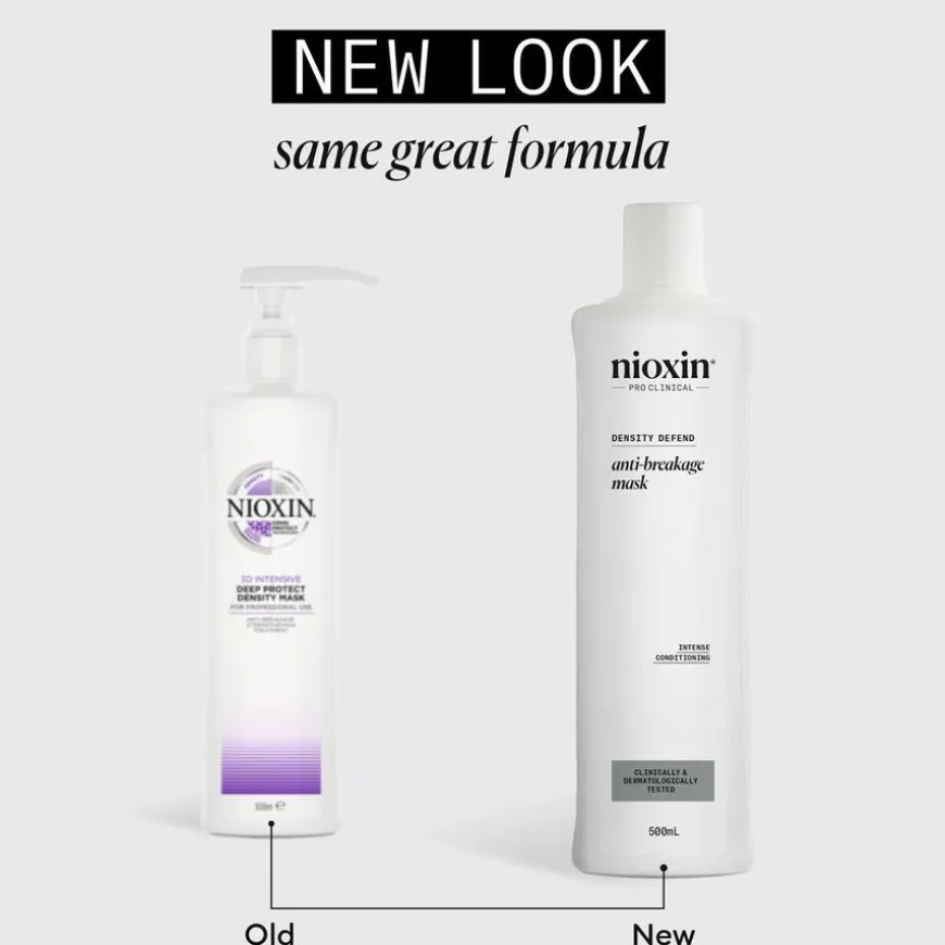 Ny look, samme fantastiske sammensetning. Nioxin Anti-Breakage Strengthening Mask er den tidligere versjonen av Nioxin Deep Protect Density Mask, også kalt The Deep Repair Mask. Denne reparerende og pleiende behandlingen har fått et nytt utseende og heter nå The Nioxin Anti-Breakage Strengthening Mask.