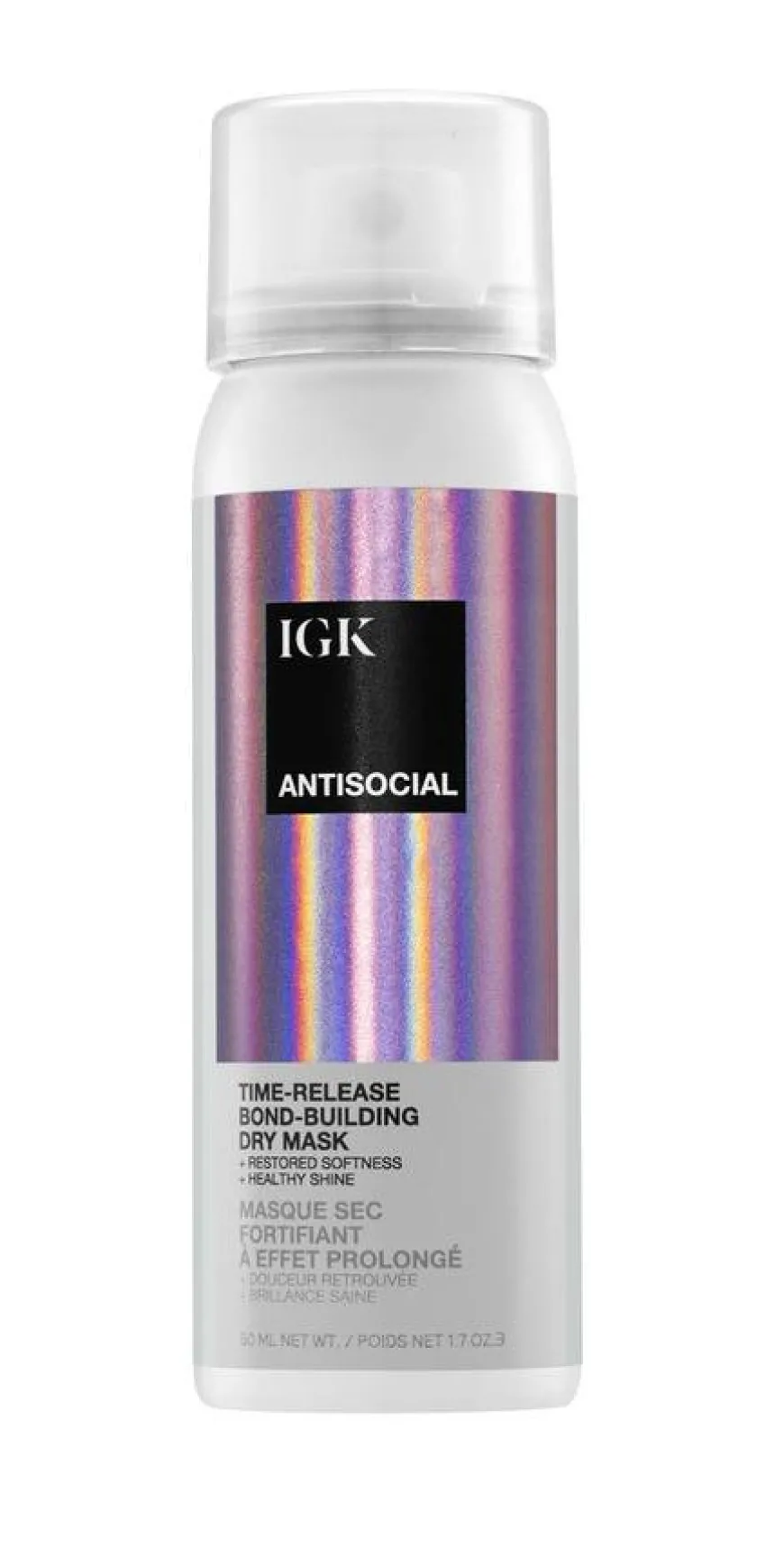 Antisocial Bond-Building Dry Hair Mask gjenoppretter et sunt utseende til tørt og skadet hår. Lett formel gir dyp hydrering, gir mykhet og tilfører glans, uten produktrester og uten å skylles ut.Med IGK’s Leave-In Bond Building Technology, reparerer og styrker denne tørre masken håret umiddelbart og over tid, mens veganske silkeproteiner myker og glatter håret. Passer alle hårtyper. Vegansk.