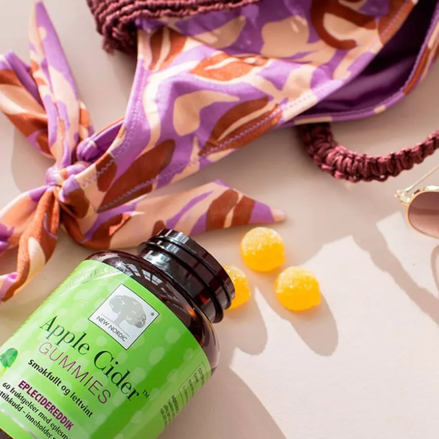 Apple Cider™ Gummies er et velsmakende alternativ til flytende eplesidereddik, og er perfekt for alle som ønsker å ta eplesidereddik uten den bitre og sure smaken. De har en deilig smak av eple, og er glutenfrie, laktosefrie og veganske.