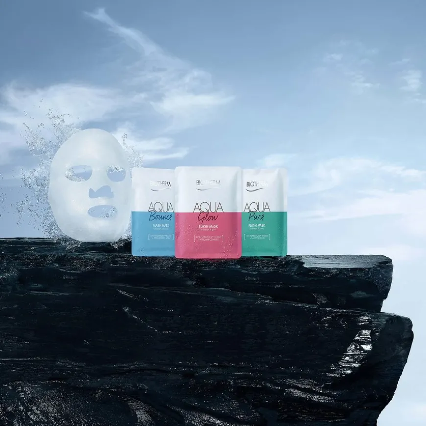 Aqua Flash Pure Moisturizing Mask er en fuktighetsgivende sheet maske med «second-skin»-teknologi, som inneholder Life Planton Water. Den fuktgivende ansiktsmasken er utviklet til å holde på mer produkt enn andre klassiske sheet masker. Så snart masken legges på ansiktet, hjelper «second-skin»-teknologien de aktive ingrediensene med å trenge inn i huden for å sikre fuktighet over lang tid. Bruk Aqua Pure Flash Mask hver uke eller når huden trenger ekstra pleie. Masken inneholder salisylsyre som gjenoppfrisker og revitaliserer huden samt hjelper den med å fremstå ren. Masken gir huden en matt effekt.