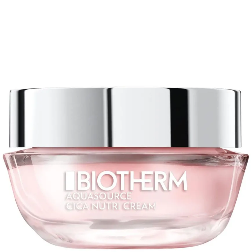 Aquasource Cica Nutri Moisturizing Day Cream er en rik og fuktgivende dagkrem til tørr hud. Produktet gjennomfukter huden umiddelbart og i opptil 48 timer. Kremen inneholder ingrediensen Centella Asiatica, som er kjent for sine beroligende og pleiende egenskaper, samt Biotherms unike signaturingrediens Life Plankton probiotiske fraksjoner av naturlig opprinnelse. Huden oppleves behagelig, myk og med fornyet glød. Aquasource Cica Nutri Moisturizing Day Cream har en rik og behagelig kremtekstur som absorberes raskt i huden og etterlater den silkemyk og uten at den føles stram.