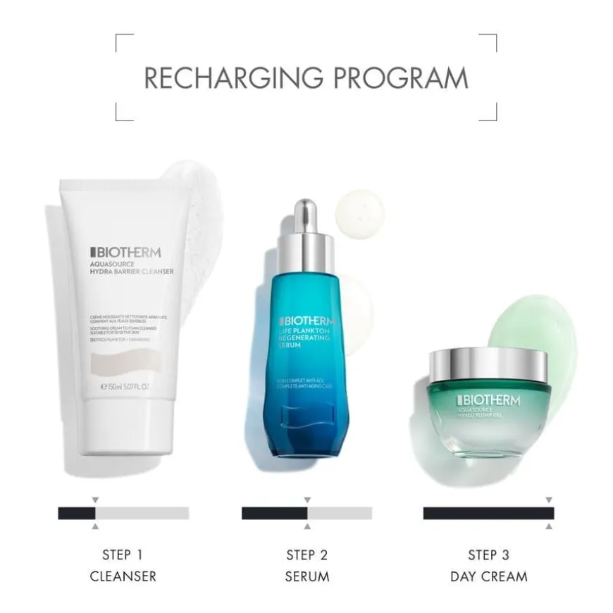 - Bruk Aquasource Hyalu Plump Gel om morgenen på nyrenset hud – og eventuelt etter ditt Life Plankton Elixir Serum for best mulige resultater.