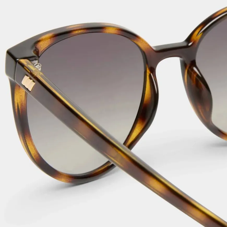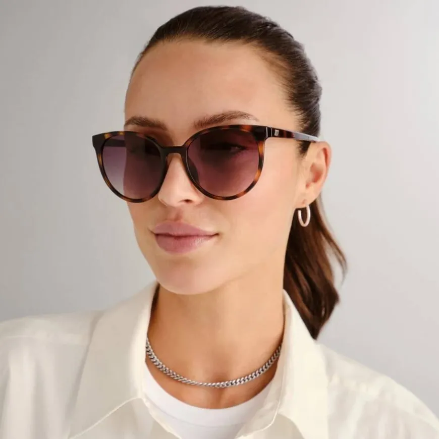 Le Specs Armada gir en myk og glamorøs tolkning av den klassiske cat-eye-solbrillen. Denne flatterende silhuetten er perfekt for daglig bruk og er designet med en elegant, finrammet profil og Le Specs’ ikoniske flagstripe-metalldetalj. Den er ferdigstilt i en tidløs skilpaddemønstret innfatning med khaki-gradiente linser for en sofistikert look.