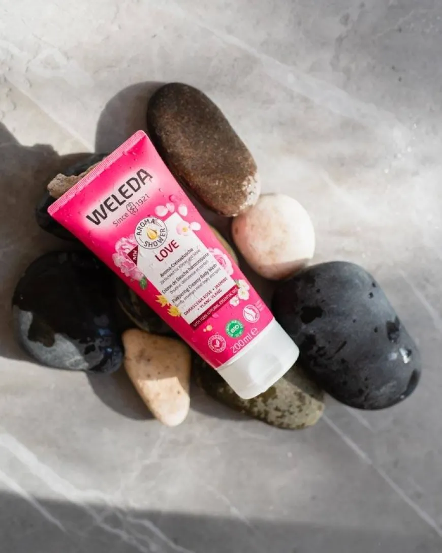 Luksuriøs dusjkrem med naturlige ingredienser som pleier huden i kombinasjon med en harmoniserende blomsterduft for sansene. Med naturlige duftnoter av romantisk rose, verdifull jasmin og søt ylang ylang. Renser huden mildt med en base av mykgjørende solsikkeolje og naturlige sukkertensider. Nyt et øyeblikk av «kjærlighet» med Weledas dusjkrem som har 100 % naturlig opprinnelse. Dermatologisk testet.