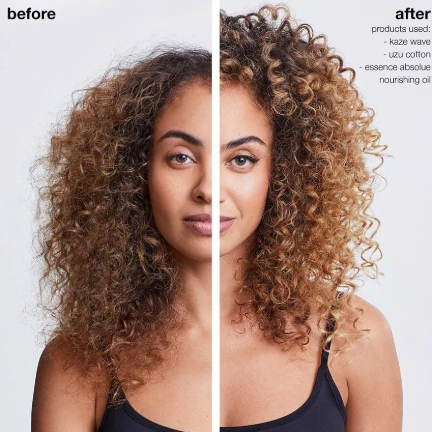 Med inspirasjon fra japansk minimalisme gir Kaze – som betyr vind på japansk – definerte krøller og bølger med langvarig fleksibelt hold. Denne moussen etterlater håret med en mykt, vektløst resultat og naturlig glans. Den gir varmebeskyttelse og beskytter håret mot fukt. Den passer perfekt til myke bølger uten frizz, til krøller, kontrollerte fletter og håroppsetting.
