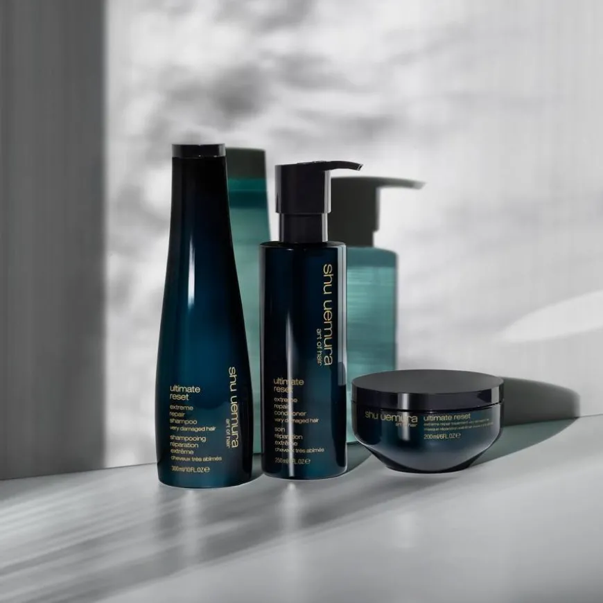 Shu Uemura Art Of Hair Ultimate Reset Conditioner er enekstremt gjenoppbyggende balsam til hår som er svært skadet fra bleking, farging, permanent og utglatting. Beriket med risekstrakt fra Japan som er kjent for sine beskyttende egenskaper. Balsamen gjenoppbygger hårfiberet og beskytter håret mot brudd. Håret blir fornyet og forskjønnet: håret føles mykere, sterkere, mer håndterbart og skinner i all sin naturlige skjønnhet.