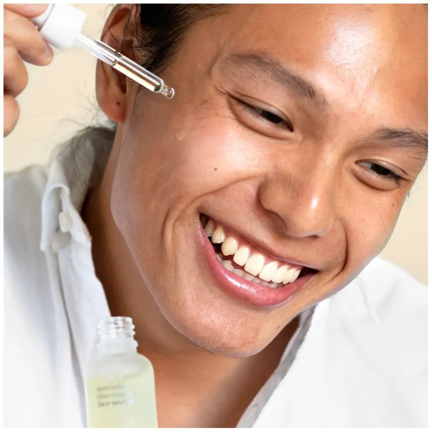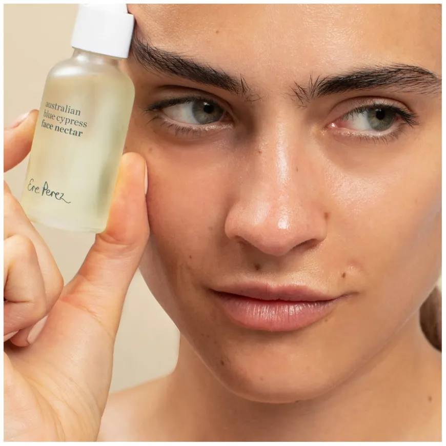 Australian Blue Cypress Face Nectar er en ansiktsolje med nærende planteekstrakter som revitaliserer huden. Inneholder blant annet australsk blå sypress, kamelia, jasminblomst, jojoba, sedertre og ris, som gir huden et ungdommelig og friskt utseende. En behagelig ansiktsolje som mykgjør huden og gir den en vakker glød. Naturlige antioksidanter og omega-fettsyrer bidrar til hudens ungdommelige utseende.