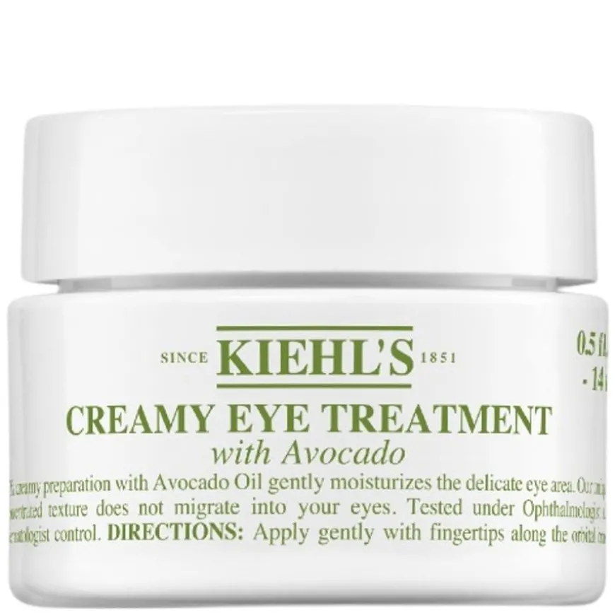 Avocado Creamy Eye Treatment er en nærende og bestselgende øyekrem fra Kiehl’s, kjent for sin kremete tekstur og fuktighetsgivende effekt. Den er formulert med avokadoolje, sheasmør og betakaroten, og gir intens og langvarig fuktighet til det sensitive øyepartiet. Kremen bidrar til å lyse opp mørke ringer, redusere hevelser og forbedre hudens komfort. Den fungerer også utmerket som primer under øyemakeup eller som en fuktighetsmaske, og er dermed et multifunksjonelt produkt som passer både dag og natt. Produktet er pakket i bærekraftig emballasje med 100 % resirkulerbare materialer (PCR).