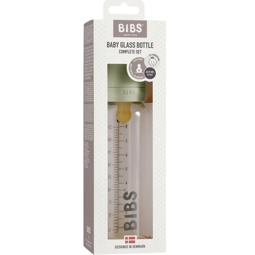 Baby Glass Bottle er en tåteflaske i glass, nøye utformet for både babyer og foreldre. Flasken er laget av borosilikatglass som gir et svært lett og resistent glass som tåler raske temperaturforandringer. Glasset avgir ingen skadelige stoffer i melken. Smokken på flasken er spesielt utviklet for å matche smokken fra den populære BIBS Colour-smokken og ligner på morens myke brystvorte. Smokken har en anti-kolikk-ventil for å sikre best mulig melkestrøm for babyen din. Smokken er laget av naturlig gummi-latex. De andre delene er laget av 100% matvaregodkjent materiale. Overholder den europeiske standarden EN14350.
