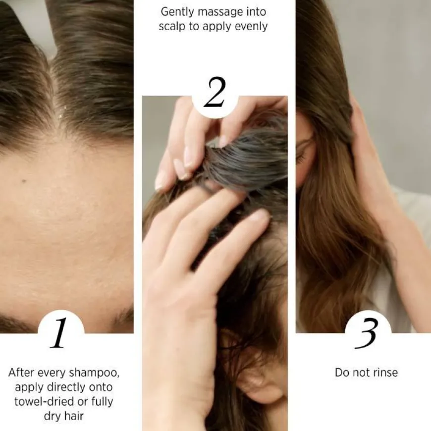 - Etter hver hårvask påføres serumet direkte i håndkletørket eller tørt hår.
