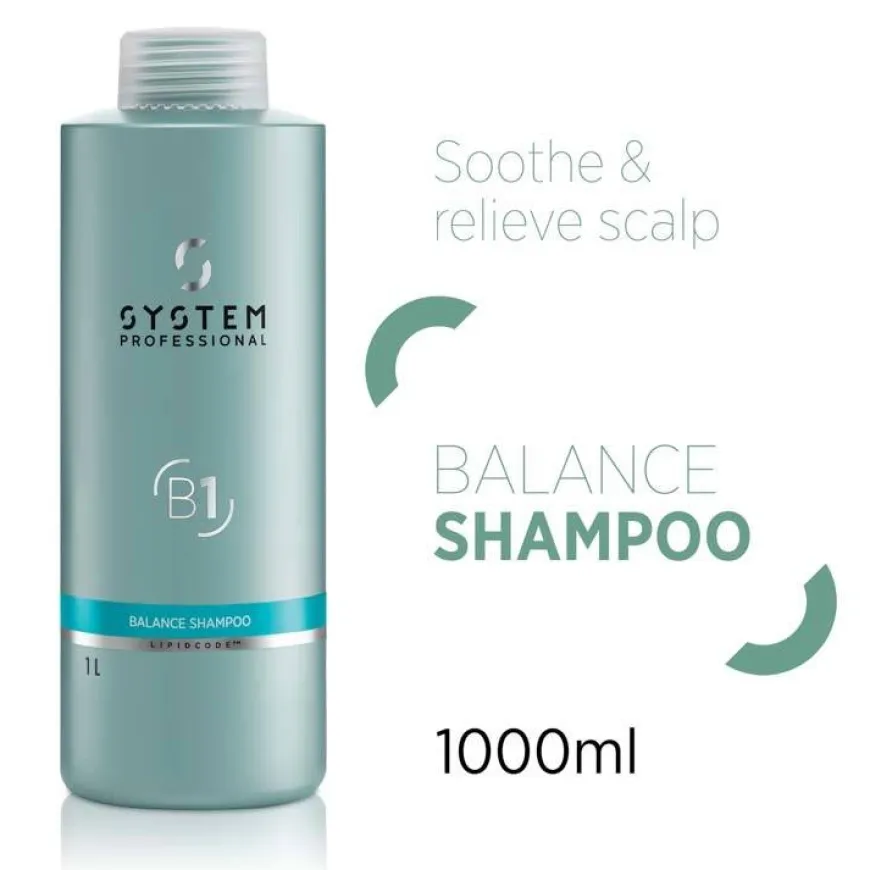 System Professional Balance Shampoo er en hudvennlig, pH-nøytral og skånsom shampoo som lindrer sensitiv hodebunn.