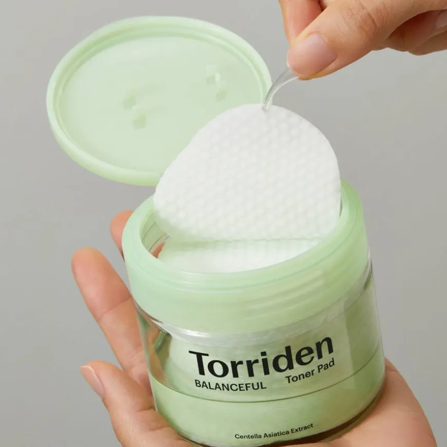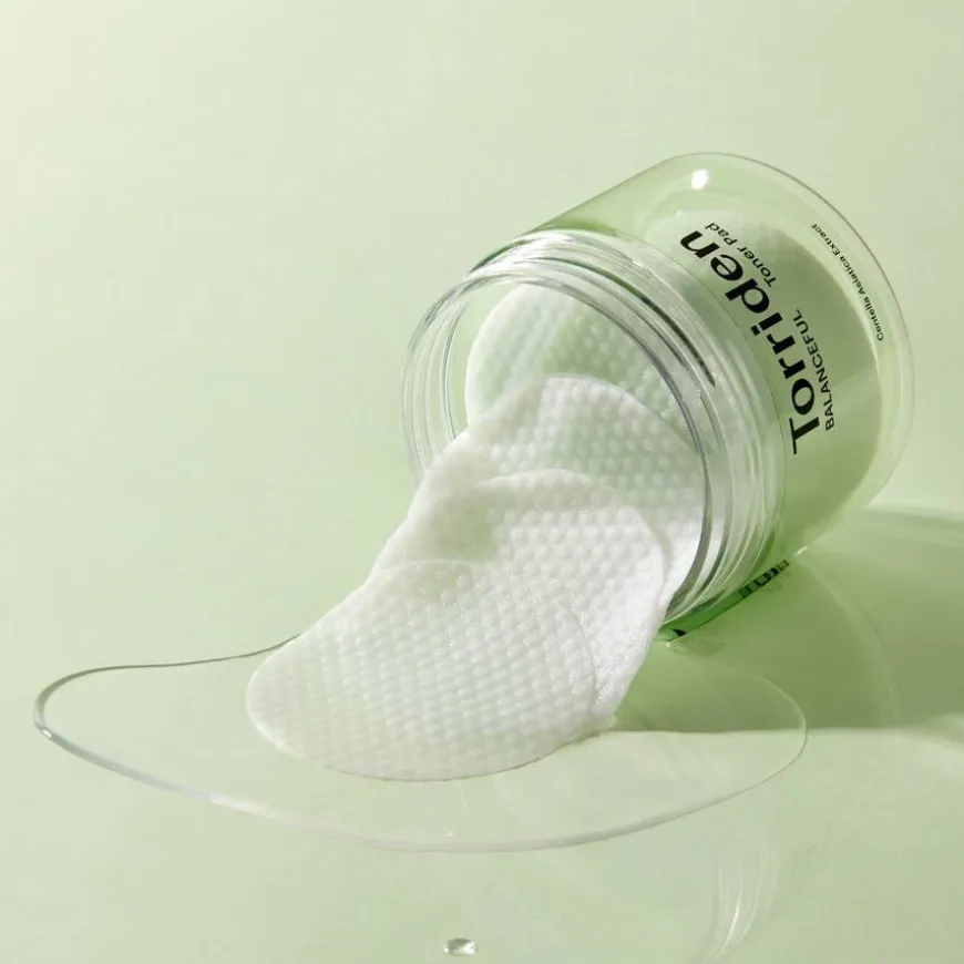 TORRIDEN BALANCEFUL Toner Pad har en hel flaske med beroligende essens absorbert inn i de veganske padsene. Brukes for å skånsomt eksfoliere, berolige, tilføre fuktighet og preppe huden.