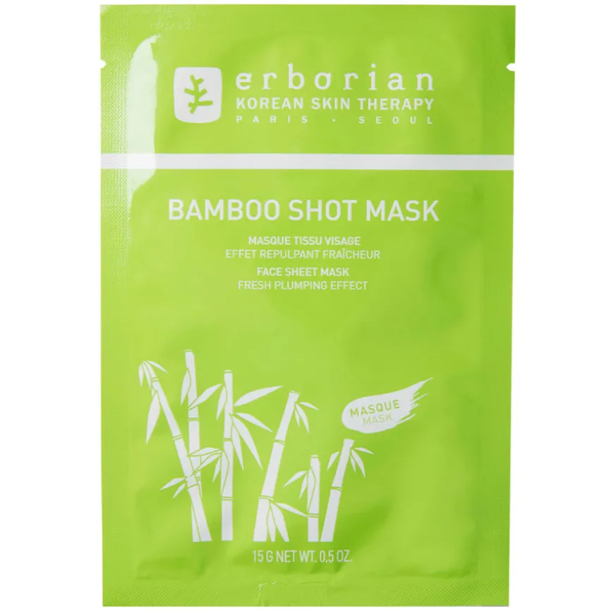 Bamboo Shot Mask er en ansiktsmaske beriket med Bamboo Waterlock-kompleks som er kjent for sine fuktighetsgivende egenskaper. Masken er en engangsmaske med frisk effekt som hjelper med å gjenopplive selv trett hud. Masken gir huden en frisk boost takket være en struktur laget av glatte cellulosefibre som bidrar til å spre de aktive ingrediensene. For å levere resultater som kan sammenlignes med et serum, fungerer masken som et konsentrat som umiddelbart fukter og plumper huden dag etter dag.