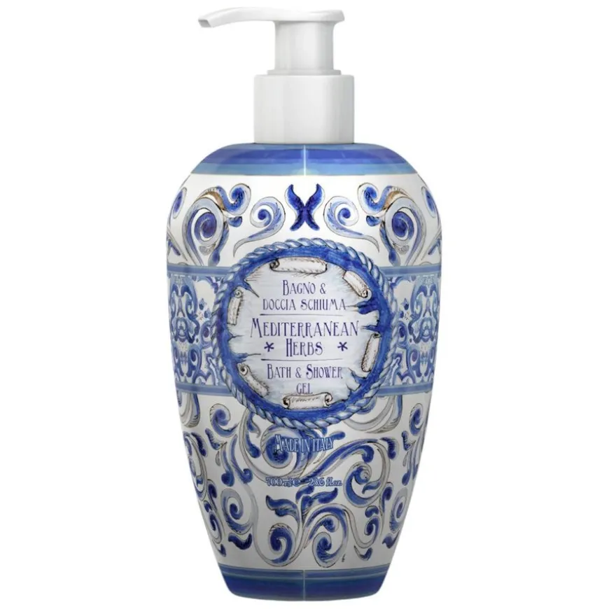 Bath And Shower Gel Mediterranean Herbs er en herlig generøs og rikt skummende såpe som kan brukes som både badeskum og dusjgele. Beriket med Aloe Vera juice og vitamin E for å gi ekstra fuktighet og næring til huden slik at den ikke tørker ut. Er med på å holde huden myk og frisk, og etterlater en helt nydelig frisk duft. En fresh unisex-duft av aromatiske urter som blant annet myrt og ingefær. La deg omfavne av denne herlige duften som er spesielt utformet for å gi en frisk duft av aromatiske urter fra området rundt Middelhavet. Frisk og ren.