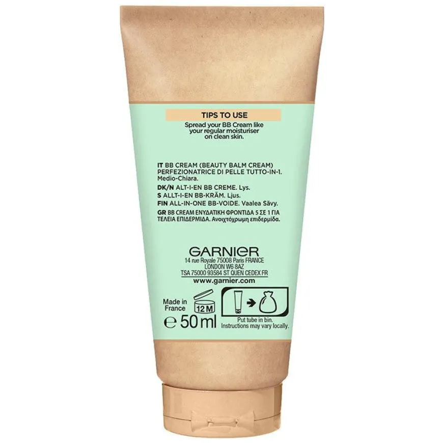 Vil du også ha maksimalt ut av enhver situasjon? Da passer alt-i-en-strategien fra Garnier deg. OppdagGarnier BB Cream Classic, en allsidig alt-i-en BB-dagkrem med UV-beskyttelse og et hint av makeup som fukter, pleier, gir glød, jevner ut og korrigerer hudtonen. Garnier tar vare på huden din så du kan nyte dagen. Man kan aldri få for mye av det gode! Fantastisk fresh og vakker hud. En formel beriket med hyaluronsyre og aloe vera-ekstrakt. Testet under dermatologisk kontroll.