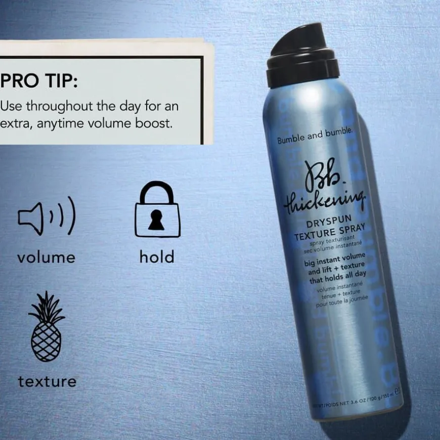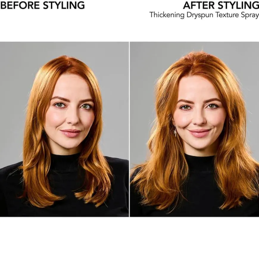 Thickening Dryspun Texture Spray er en gjennomsiktig, tørr finish-spray som gir umiddelbart volum, løft og luftig tekstur. Den er formulert med en teksturgivende blanding av zeolitt og silkepulver, og gir +40 % mer volum enn ubehandlet hår. Perfekt for fine til medium hårtyper som ønsker hold, fylde og en naturlig, voluminøs look – uten å tynge.