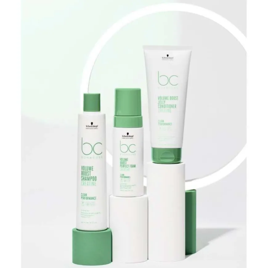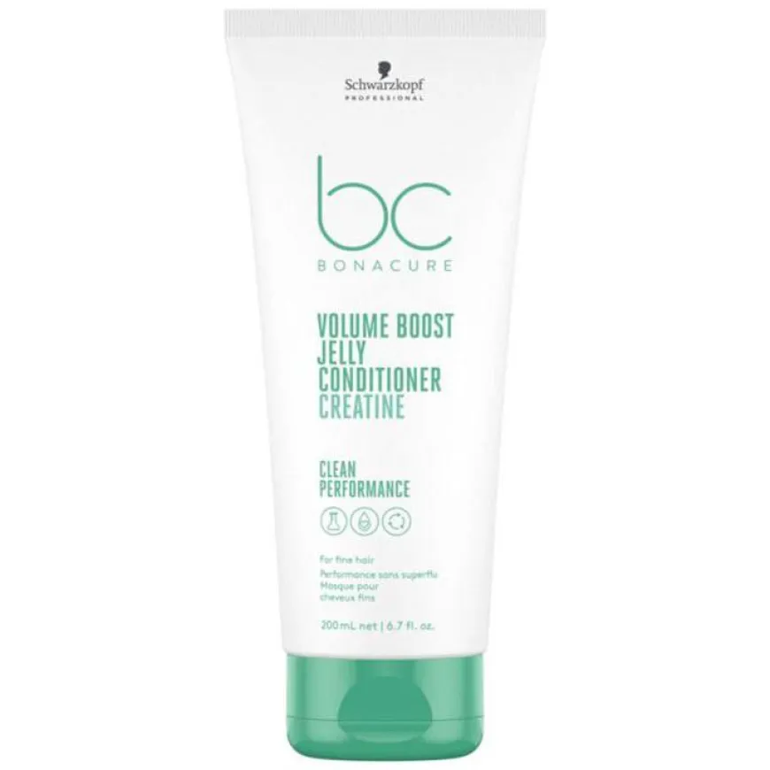 BC Bonacure Volume Boost Jelly Conditioner er en ikke-tyngende gel-balsamen for fint og svakt hår. Den lette gelen pleier og virker flokløsende og sammensetningen med kreatin styrker og bidrar til å gjenopprette hårets elastisitet. Sammensetningene med Kreatin gjenoppretter hårfibrene og kombinert med med Cell Equalizer glattes håroverflaten for smidighet, håndterbarhet, spenst og glans. Håret får volum og fylde i opptil 48 timer. Serien forbedrer volum ihvert enkelt hårstrå.