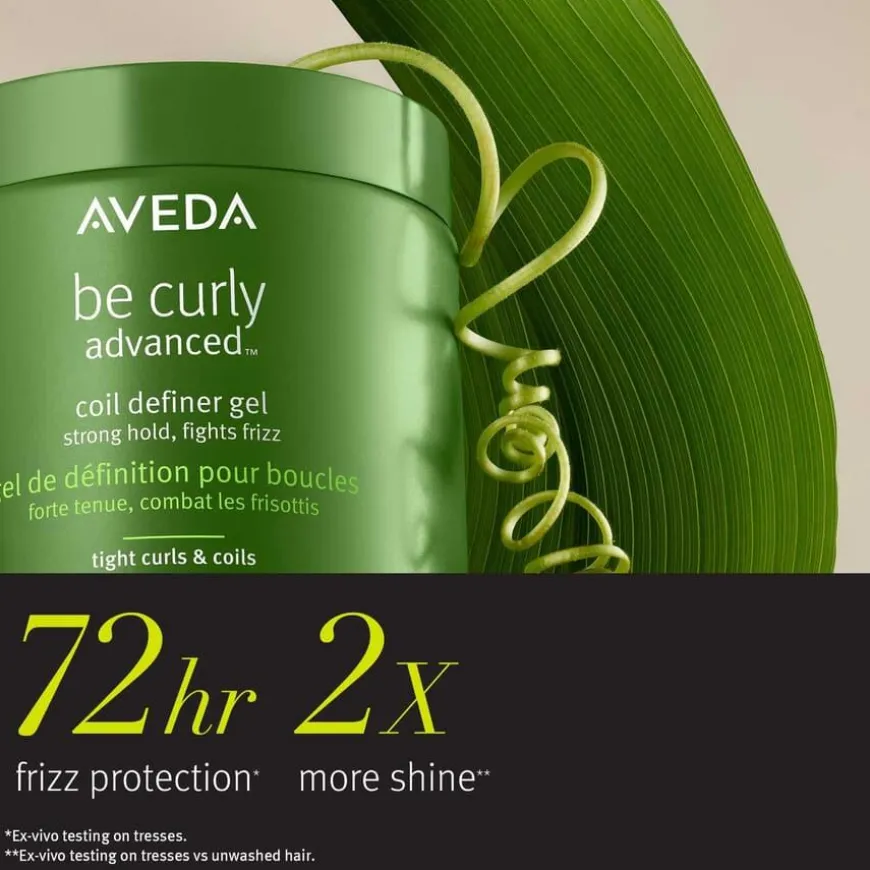 Be Curly Advanced Coil Definer Gel fra Aveda er en silikonfri stylinggel utviklet for å definere og beskytte krøller og spiralkrøller i type 3C–4C. Gelen gir opptil 72 timers beskyttelse mot krus selv i høy luftfuktighet*, og tilfører dobbelt så mye glans** til krøllene. Formelen inneholder et plantebasert peptid som styrker skjøre krøller og forbedrer elastisiteten. Resultatet er myke, definerte og glansfulle krøller med hold og bevegelse.