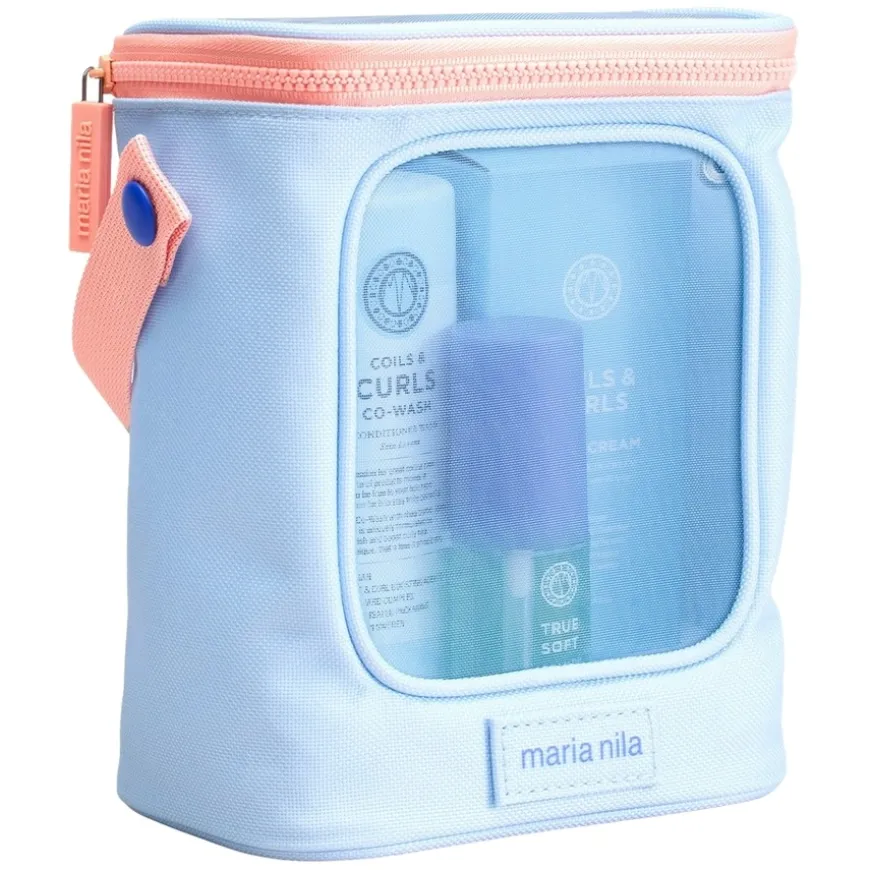 Beauty Bag Coils & Curls er et nærende og fuktighetsgivende hårpleiesett fra Maria Nila, utviklet spesielt for alle typer krøllete hår. Settet inneholder Coils & Curls Co-Wash 350ml, en mild balsamvask som kombinerer shampoo og balsam i ett. Den renser skånsomt og tilfører fukt med sheasmør, jojobaolje, aloe vera og vitamin E. Coils & Curls Oil-In-Cream 100ml er en leave-in hårkrem som løser opp floker og gir myke, definerte og frizzfrie krøller. Begge produktene inneholder Color Guard Complex som beskytter fargebehandlet hår. I tillegg får du True Soft Argan Oil 30ml – en mykgjørende olje som gir glans og reduserer krus. Hele settet er 100 % vegansk, dyrevennlig og ideelt for deg med krøllete hår som trenger pleie og definisjon.